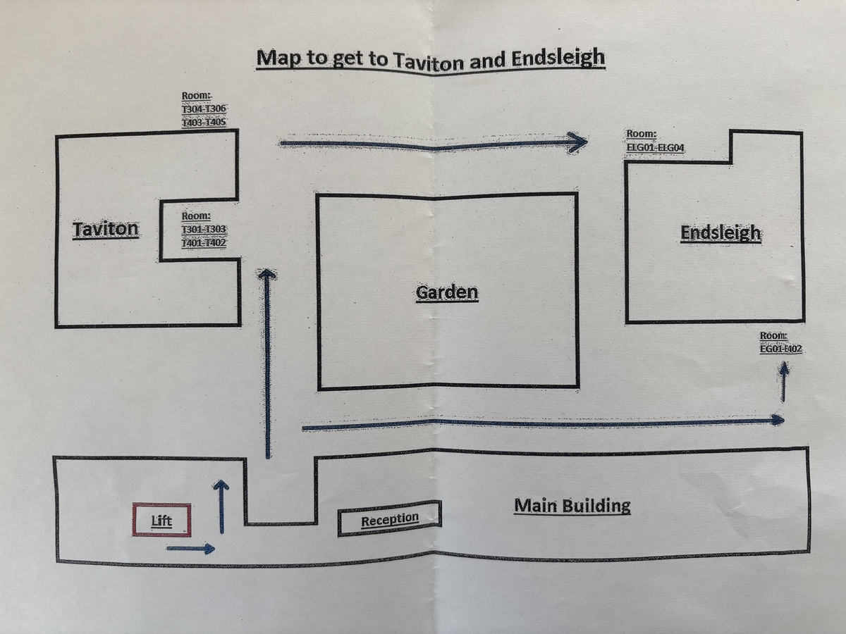 - 庭を突っ切ってTaviton棟に行く。